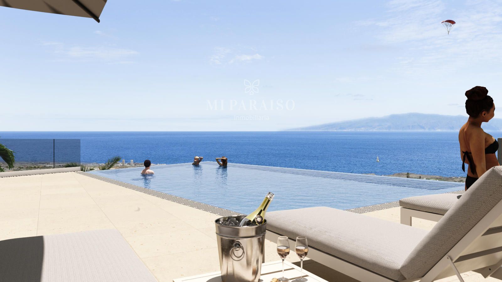 Miraval contará con una piscina infinita que se funde con el paisaje y un amplio solárium orientado al sur, perfecto para disfrutar del clima privilegiado de Tenerife durante todo el año.
